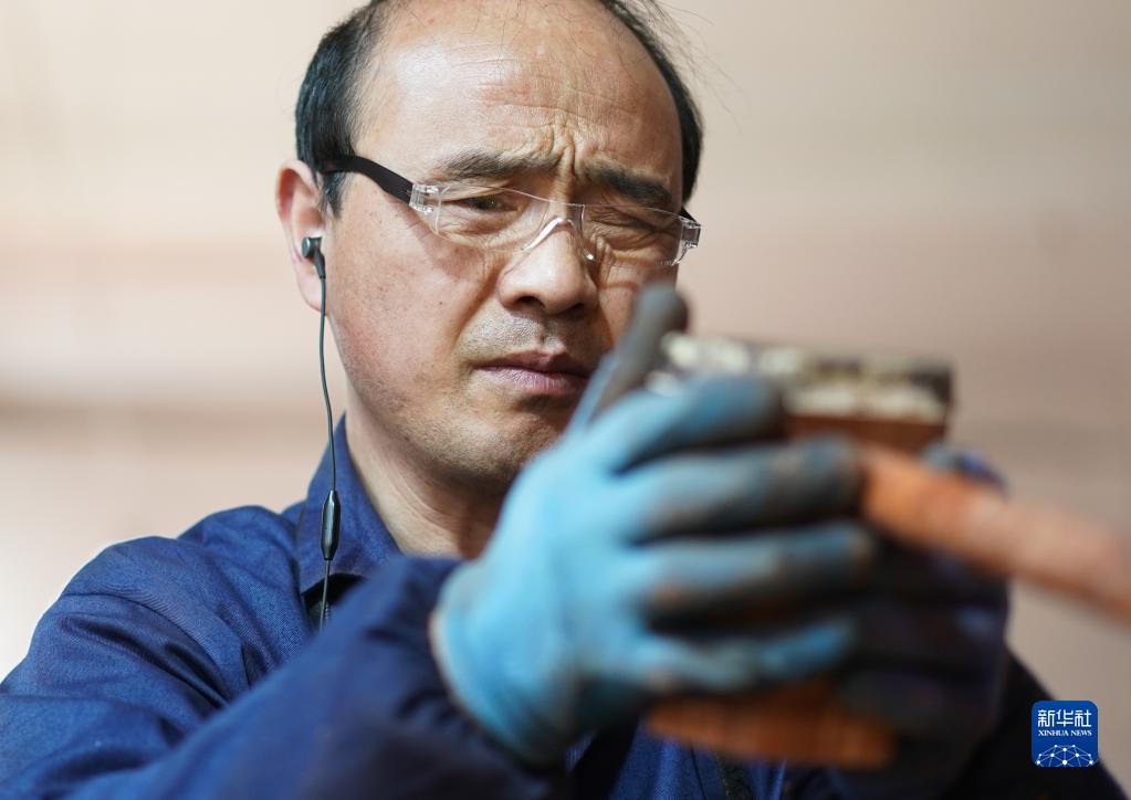3月28日,在江蘇無錫梅村街道二胡產業園古月琴坊車間,工人在制作二胡。