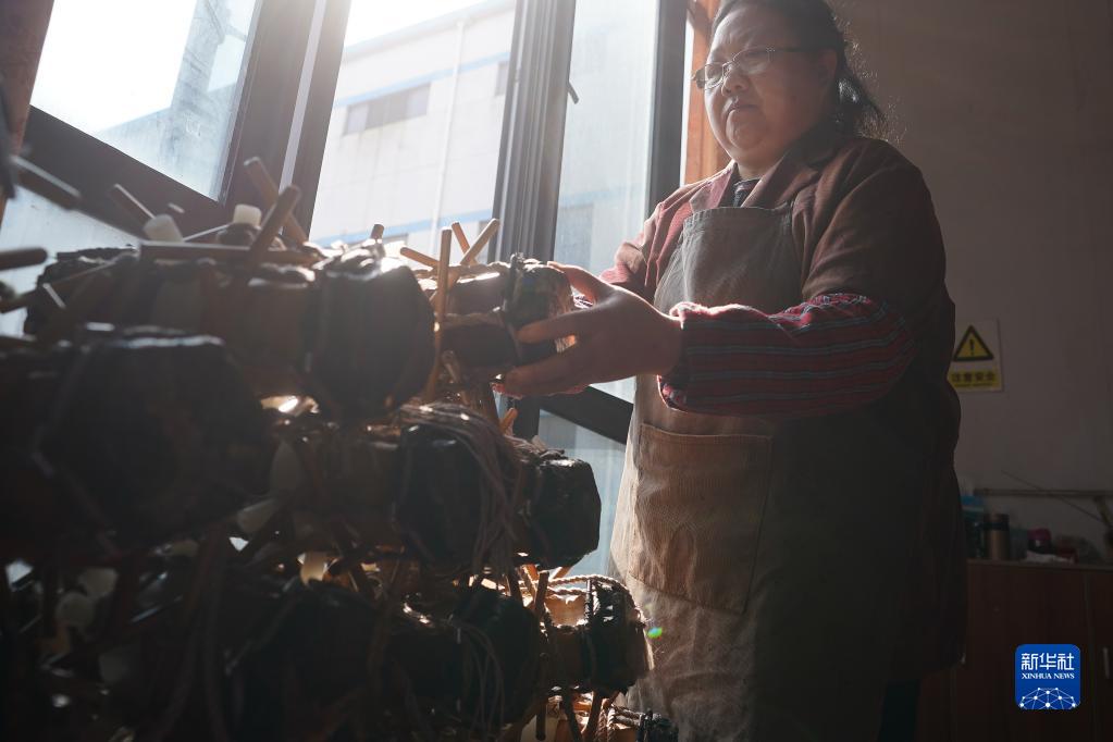 3月28日,在江蘇無錫梅村街道二胡產業園古月琴坊車間,工人在忙碌。