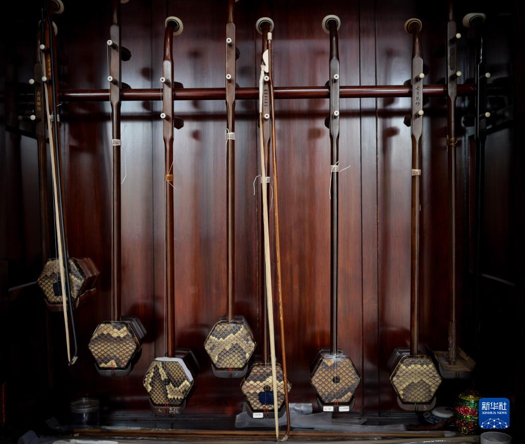這是3月28日在江蘇無錫梅村街道二胡產業園拍攝的成品二胡。