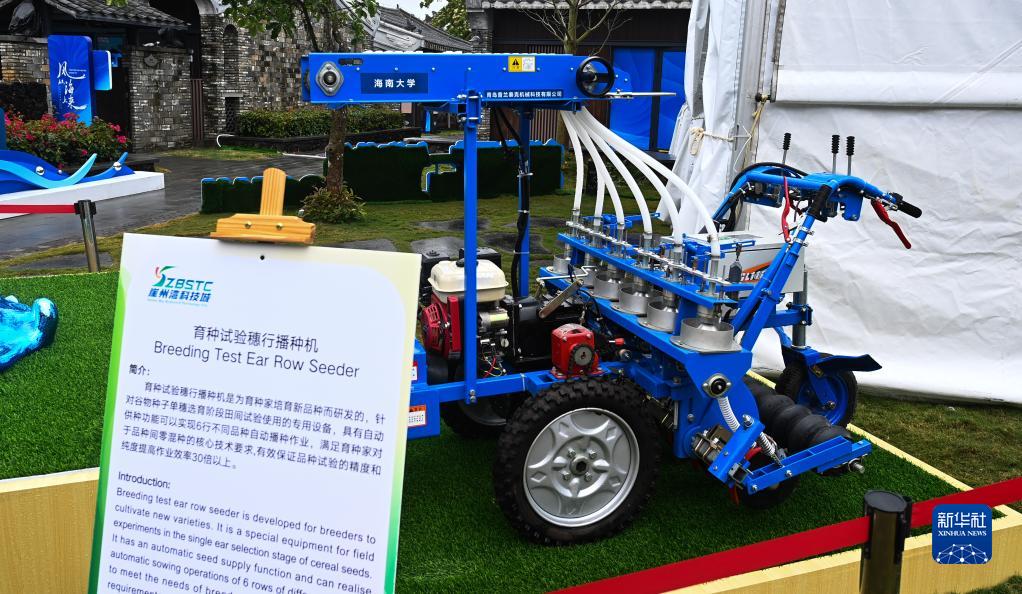 這是3月28日在三亞創新發展主題展上拍攝的育種試驗穗行播種機。