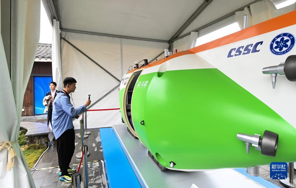 3月28日,觀眾在三亞創新發展主題展上拍攝“奮斗者”號載人潛水器模型。