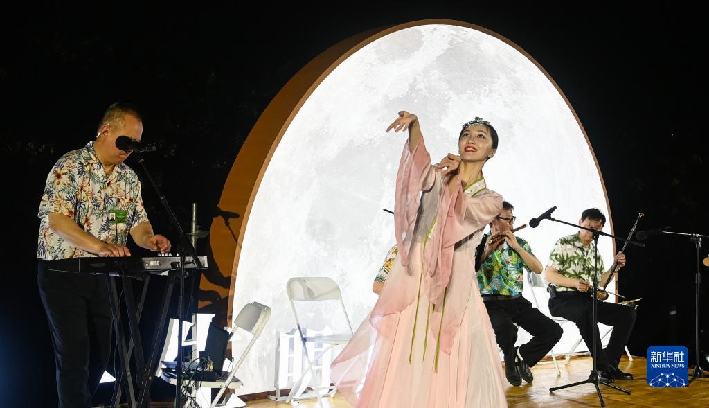 3月28日,演員在三亞創新發展主題展的“海上生明月”文化市集上表演。