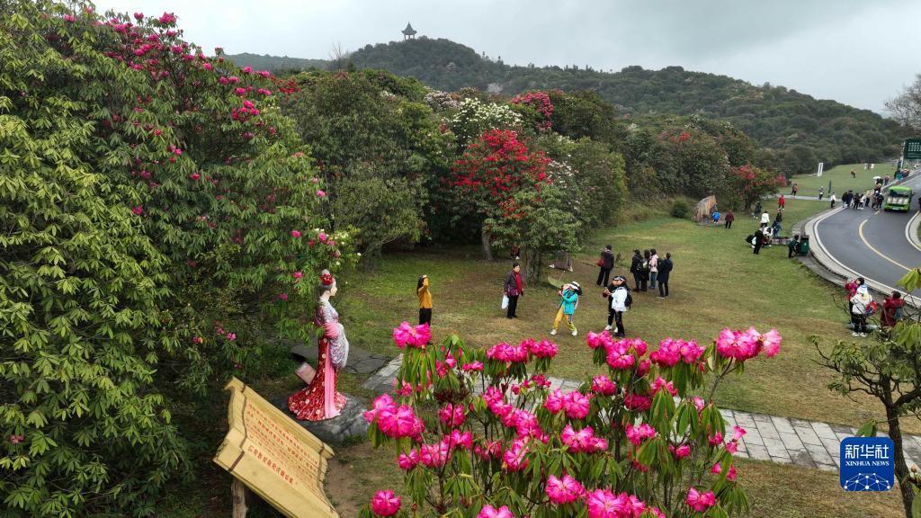 3月28日,游客在貴州省畢節市百里杜鵑風景區賞花(無人機照片)。