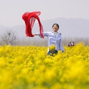 春日里,鮮花綻放,人們暢游花海,享受春光。