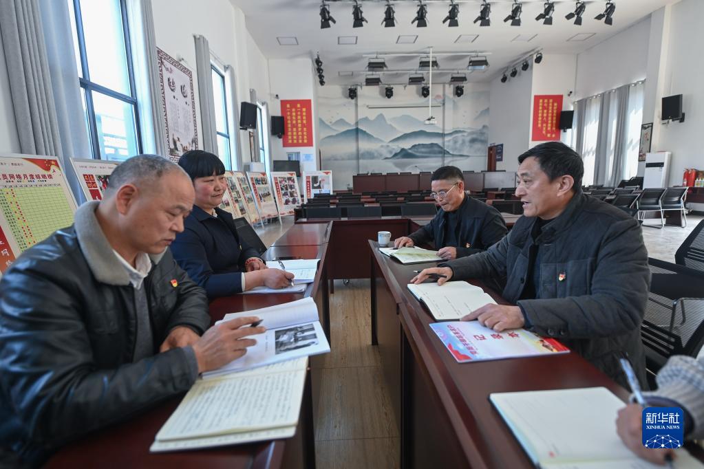 3月28日,在杭州市臨安區昌化鎮石鋪村黨群服務中心,石鋪村黨員網格長(右一、右二)向石鋪村兩委班子反饋本月走訪農戶情況。