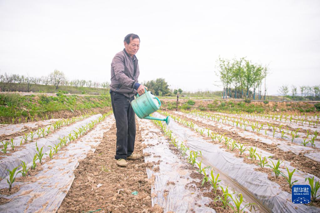 3月29日,在諸暨市楓橋鎮杜黃新村的農耕體驗研學基地,村民為新苗澆水。近年來,農旅融合發展給當地村民新增了80多個就業崗位。