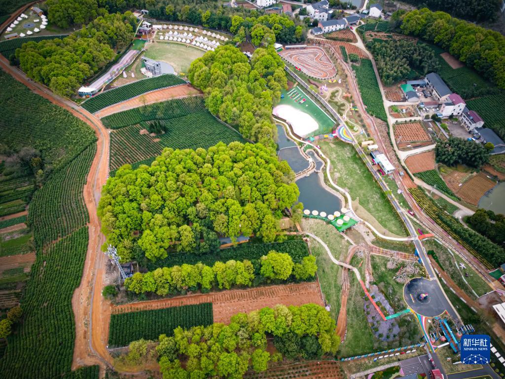 這是3月29日拍攝的諸暨市楓橋鎮陽春村陽春山月游樂度假村(無人機照片)。當地通過閑置荒山土地流轉發展鄉村旅游,幫助當地村民和村集體增收。