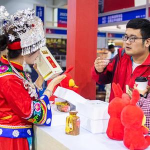 3月29日,在湖南國際會展中心,一名女子通過直播推銷商品。