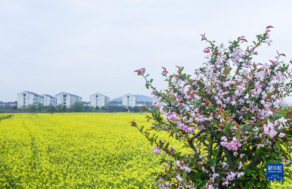 3月29日,浙江省湖州市東林鎮星群村經過土地綜合整治后建成的高標準農田邊春花綻放。