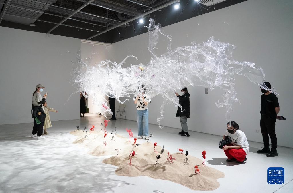 當日,“WAVELENGTH:瞬息涌現”當代藝術展在位于北京市海淀區的北京時代美術館開展。本次展覽共展出16位國際當代藝術家的14組超現實當代藝術裝置,表現“瞬息”之間的藝術風景。展覽將持續至7月1日。