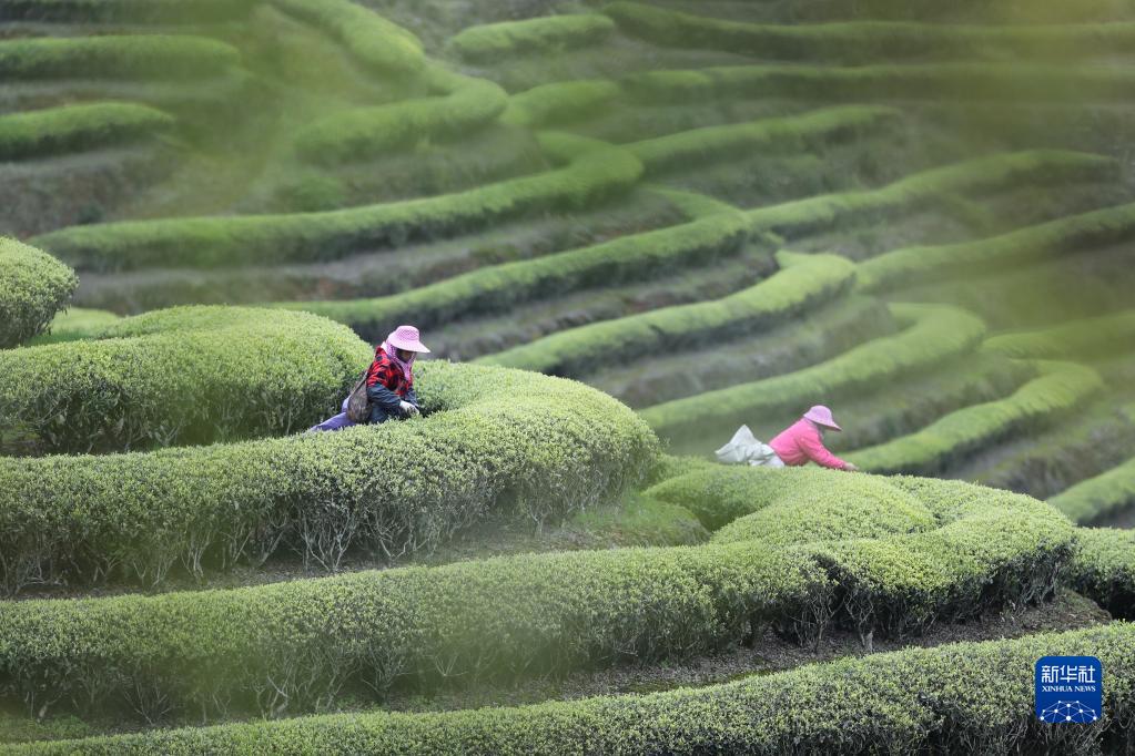 福建省連江縣長龍鎮茶農在采摘春茶(3月28日攝)。