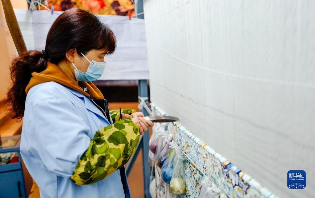 3月21日,四川閬中一家企業工人在編織絲毯。
