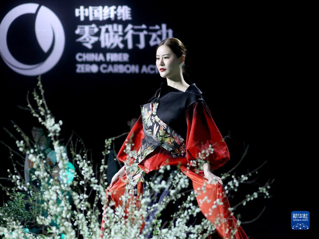 3月29日,模特在“綠色纖維制品可信平臺”發布會上展示可循環再利用的時裝。