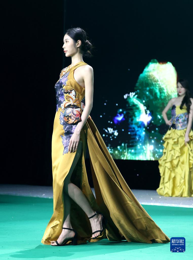 3月29日,模特在“綠色纖維制品可信平臺”發布會上展示可循環再利用的時裝。