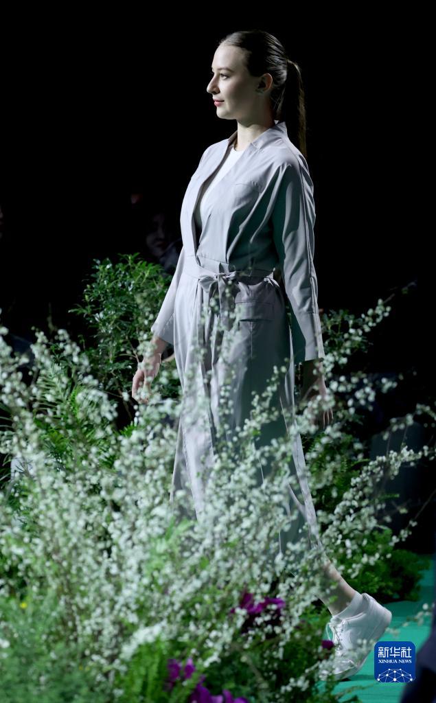 3月29日,模特在“綠色纖維制品可信平臺”發布會上展示可循環再利用的時裝。