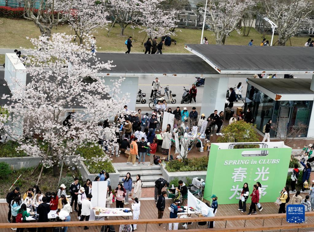 近日,隨著天氣轉暖,華東師范大學閔行校區的櫻花綻放,美不勝收,各類校園文化活動也陸續開展,令校園更顯勃勃生機。