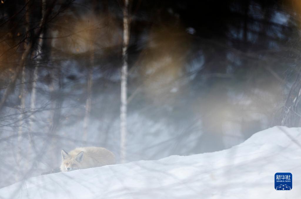 3月29日,一只赤狐在喀納斯風景區休憩。