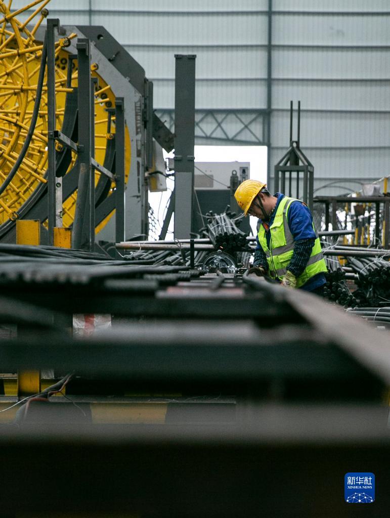 3月29日,施工人員在重慶市涪陵區渝萬高鐵項目部鋼筋智造配送中心作業。