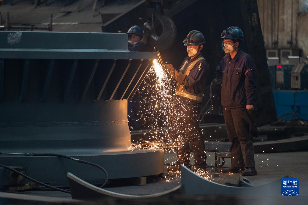 3月29日,在哈電集團哈爾濱電機廠有限責任公司的生產車間,工人在進行生產作業。