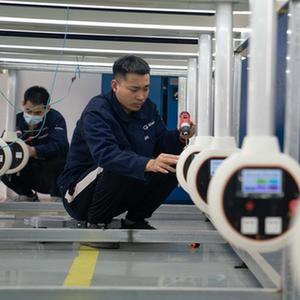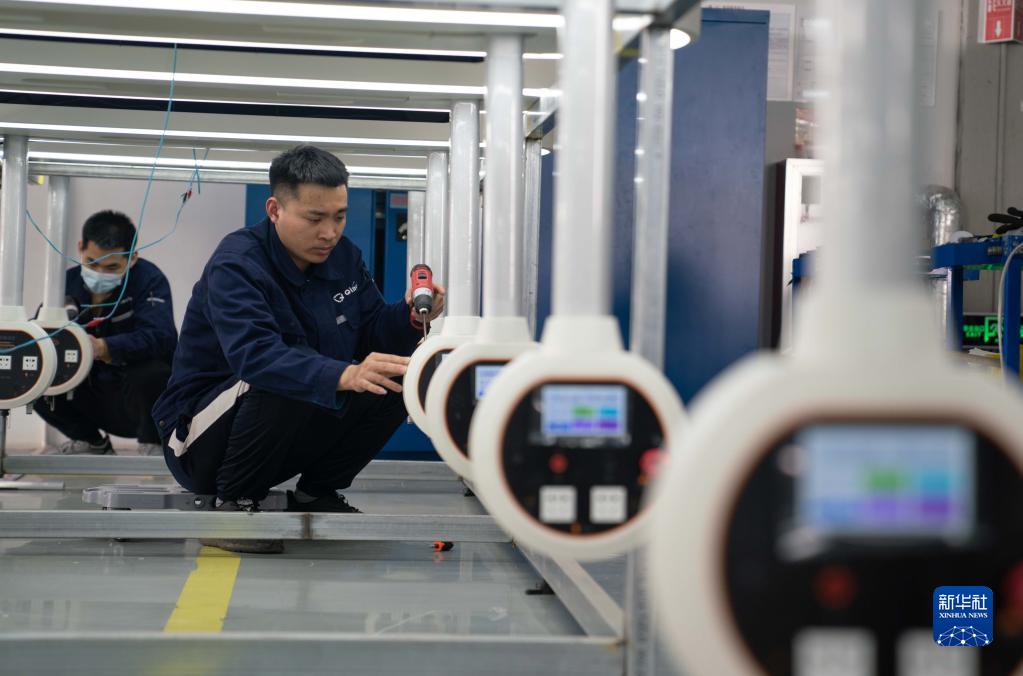 3月29日,在河北滄州渤海新區黃驊市京津裝備制造轉移園一家企業的教學實驗儀器生產車間,工人在組裝教學設備。