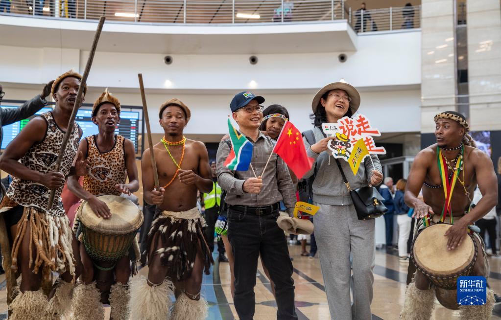當地時間29日上午,搭乘國航航班的13名中國游客抵達南非約翰內斯堡坦博國際機場。這是中國試點恢復出境團隊旅游后首批抵達南非的中國旅行團,南非旅游局在機場舉行了熱烈的歡迎儀式。