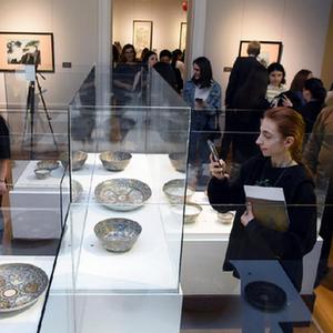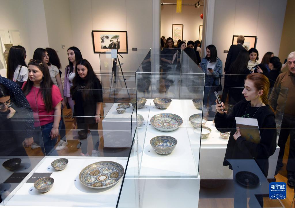 3月29日,人們在位于阿塞拜疆首都巴庫的阿塞拜疆國家藝術博物館觀看中國藝術品專題展。