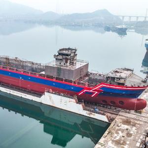 3月29日,萬噸級遠洋通信海纜鋪設船“龍吟9號”在江西九江市瑞昌市下水。
