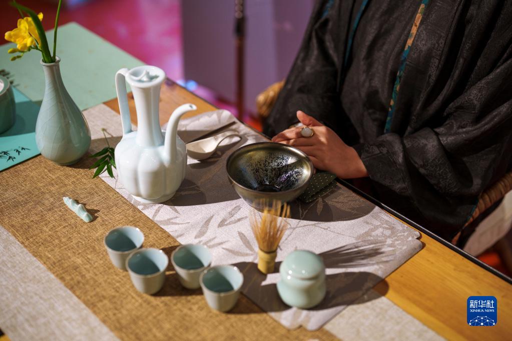 3月29日,在西班牙巴塞羅那歐洲現代藝術博物館,工作人員展示宋代茶藝。