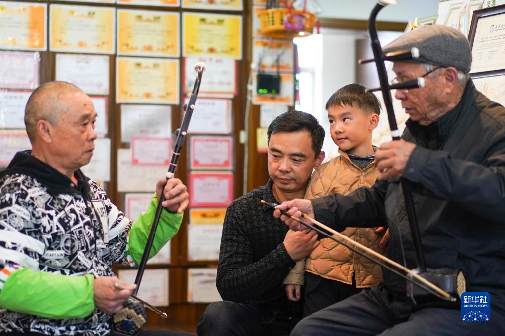 識譜、拉弦樣樣不懂,錢?;奶幱懡?,然后回家摸索練習,慢慢掌握二胡演奏技巧。受他的影響,兒子錢建平也愛上了二胡演奏。生活條件越來越好,孫子錢鈞在女兒錢智嫻5歲時便開始請專業二胡老師授課,父女倆一起學習,共同提高。2019年,錢智嫻獲得第四屆“敦煌杯”中國二胡演奏比賽非職業少年B組金獎。如今,錢鈞7歲的兒子錢智臣以姐姐為榜樣,也開始練習二胡。