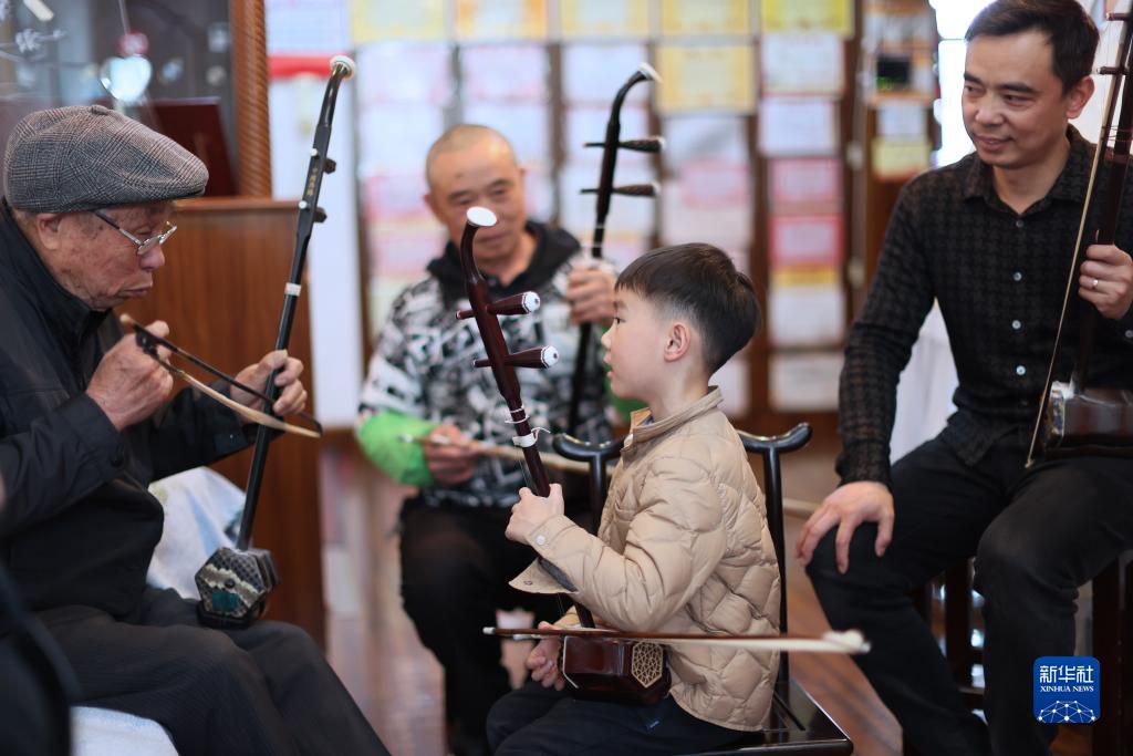 識譜、拉弦樣樣不懂,錢?;奶幱懡?,然后回家摸索練習,慢慢掌握二胡演奏技巧。受他的影響,兒子錢建平也愛上了二胡演奏。生活條件越來越好,孫子錢鈞在女兒錢智嫻5歲時便開始請專業二胡老師授課,父女倆一起學習,共同提高。2019年,錢智嫻獲得第四屆“敦煌杯”中國二胡演奏比賽非職業少年B組金獎。如今,錢鈞7歲的兒子錢智臣以姐姐為榜樣,也開始練習二胡。
