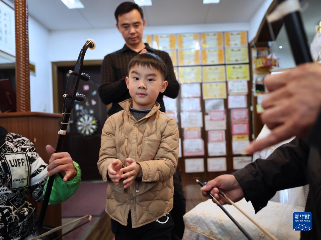 識譜、拉弦樣樣不懂,錢?;奶幱懡?,然后回家摸索練習,慢慢掌握二胡演奏技巧。受他的影響,兒子錢建平也愛上了二胡演奏。生活條件越來越好,孫子錢鈞在女兒錢智嫻5歲時便開始請專業二胡老師授課,父女倆一起學習,共同提高。2019年,錢智嫻獲得第四屆“敦煌杯”中國二胡演奏比賽非職業少年B組金獎。如今,錢鈞7歲的兒子錢智臣以姐姐為榜樣,也開始練習二胡。