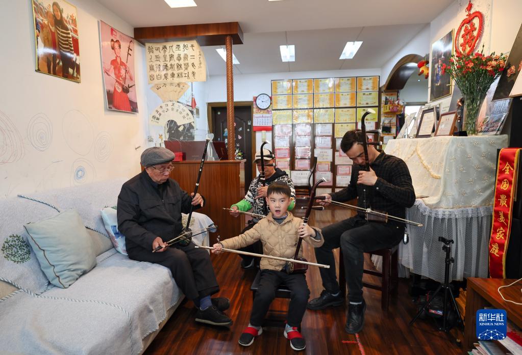 識譜、拉弦樣樣不懂,錢?;奶幱懡?,然后回家摸索練習,慢慢掌握二胡演奏技巧。受他的影響,兒子錢建平也愛上了二胡演奏。生活條件越來越好,孫子錢鈞在女兒錢智嫻5歲時便開始請專業二胡老師授課,父女倆一起學習,共同提高。2019年,錢智嫻獲得第四屆“敦煌杯”中國二胡演奏比賽非職業少年B組金獎。如今,錢鈞7歲的兒子錢智臣以姐姐為榜樣,也開始練習二胡。