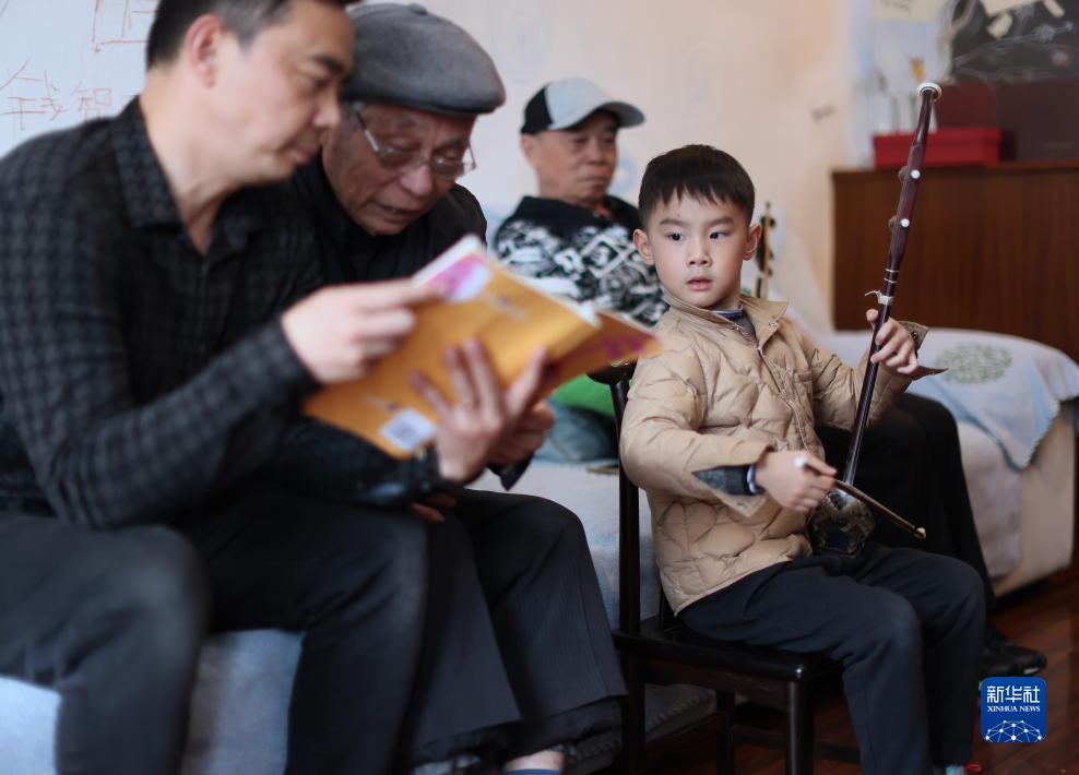 識譜、拉弦樣樣不懂,錢?;奶幱懡?,然后回家摸索練習,慢慢掌握二胡演奏技巧。受他的影響,兒子錢建平也愛上了二胡演奏。生活條件越來越好,孫子錢鈞在女兒錢智嫻5歲時便開始請專業二胡老師授課,父女倆一起學習,共同提高。2019年,錢智嫻獲得第四屆“敦煌杯”中國二胡演奏比賽非職業少年B組金獎。如今,錢鈞7歲的兒子錢智臣以姐姐為榜樣,也開始練習二胡。