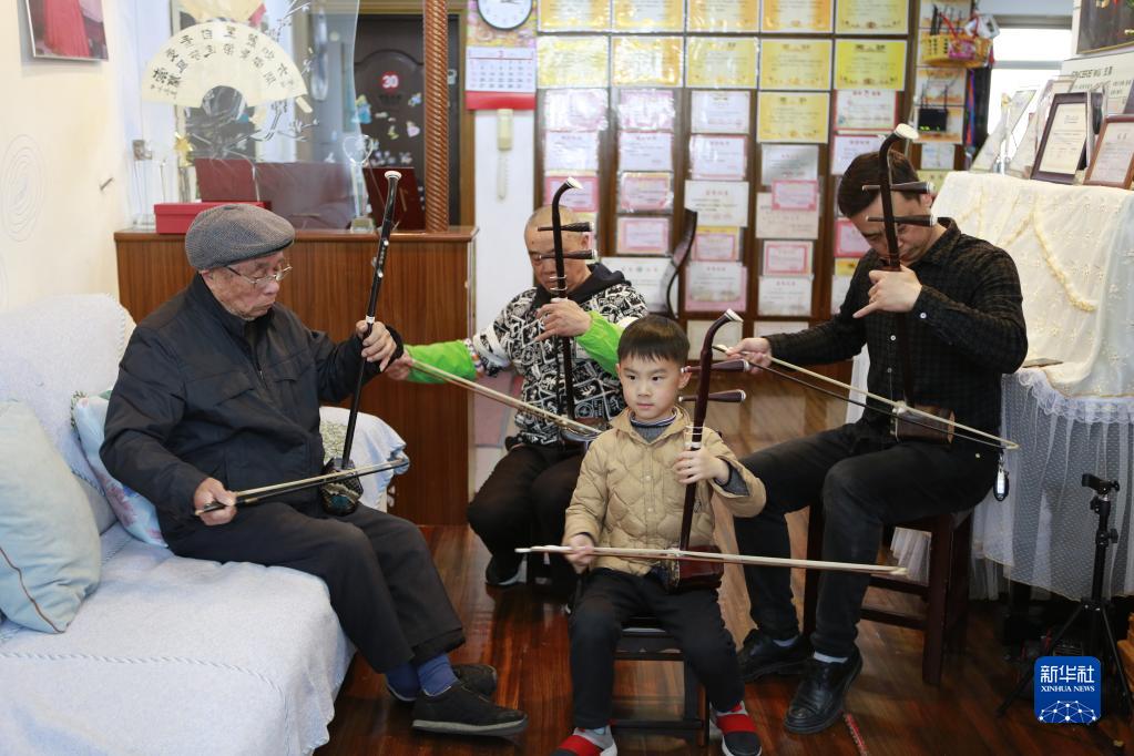 識譜、拉弦樣樣不懂,錢?;奶幱懡?,然后回家摸索練習,慢慢掌握二胡演奏技巧。受他的影響,兒子錢建平也愛上了二胡演奏。生活條件越來越好,孫子錢鈞在女兒錢智嫻5歲時便開始請專業二胡老師授課,父女倆一起學習,共同提高。2019年,錢智嫻獲得第四屆“敦煌杯”中國二胡演奏比賽非職業少年B組金獎。如今,錢鈞7歲的兒子錢智臣以姐姐為榜樣,也開始練習二胡。