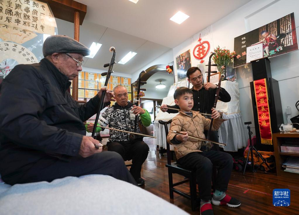 識譜、拉弦樣樣不懂,錢?;奶幱懡?,然后回家摸索練習,慢慢掌握二胡演奏技巧。受他的影響,兒子錢建平也愛上了二胡演奏。生活條件越來越好,孫子錢鈞在女兒錢智嫻5歲時便開始請專業二胡老師授課,父女倆一起學習,共同提高。2019年,錢智嫻獲得第四屆“敦煌杯”中國二胡演奏比賽非職業少年B組金獎。如今,錢鈞7歲的兒子錢智臣以姐姐為榜樣,也開始練習二胡。