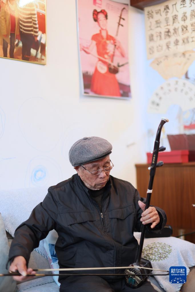 江蘇無錫89歲高齡的錢?;先四贻p時靠著省吃儉用,購買了一把竹制二胡,從此,他和他的家人逐漸與二胡結下不解之緣。