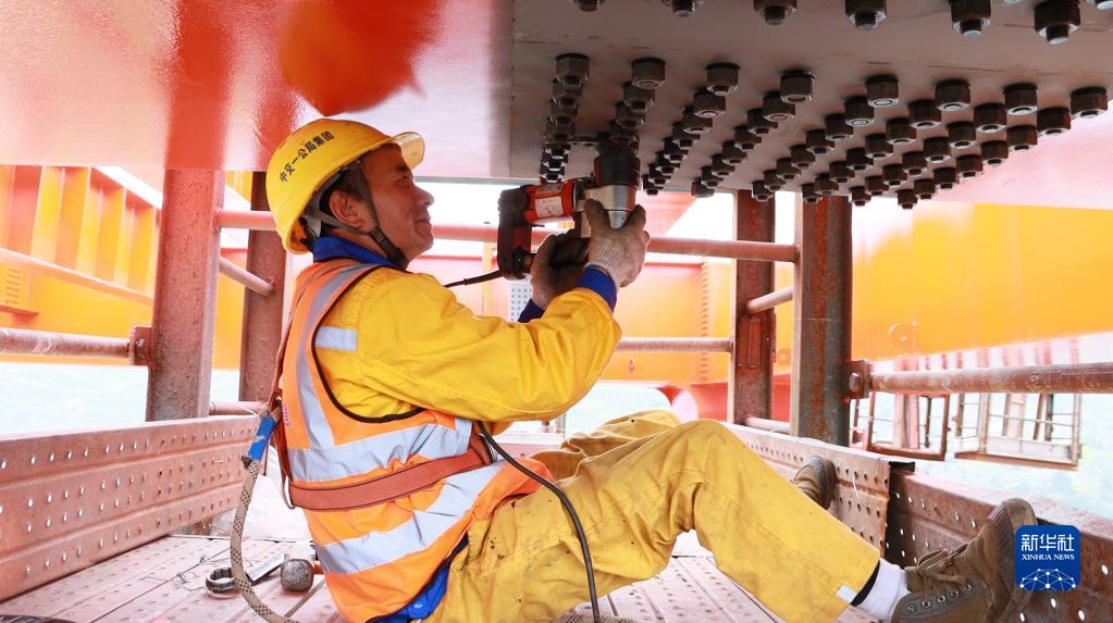 3月30日,中交一公局工人在德余高速烏江特大橋施工現場作業。