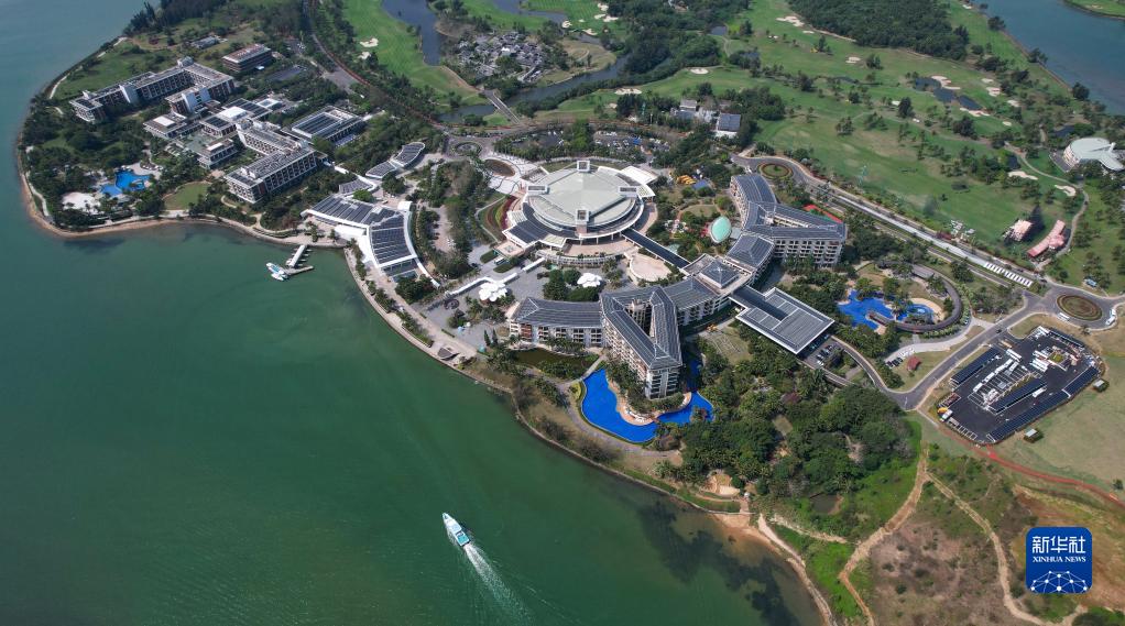 在博鰲零碳示范區,大部分建筑頂上都鋪設了光伏板(3月15日攝,無人機照片)。
