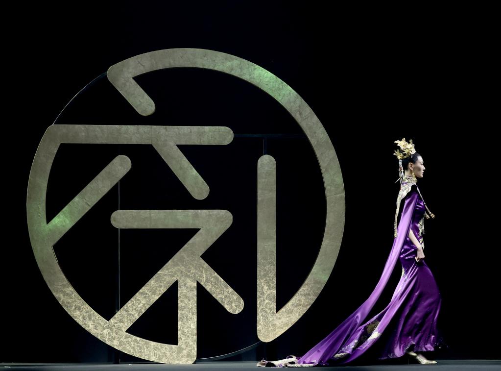 3月30日,在北京舉行的中國國際時裝周2023秋冬系列“六禮·張效奇”時裝發布上,模特展示時裝設計師張效奇設計的時裝。