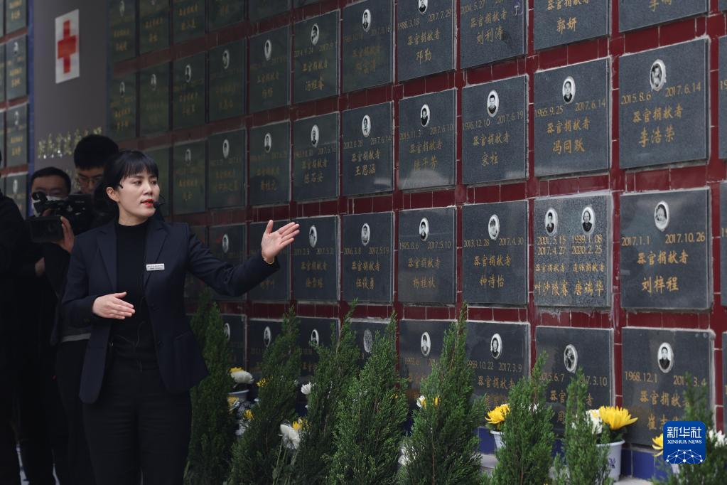 3月30日,工作人員在湖南省長沙市鳳凰山遺愛人間公益紀念陵園講解器官捐獻者葉沙的故事。