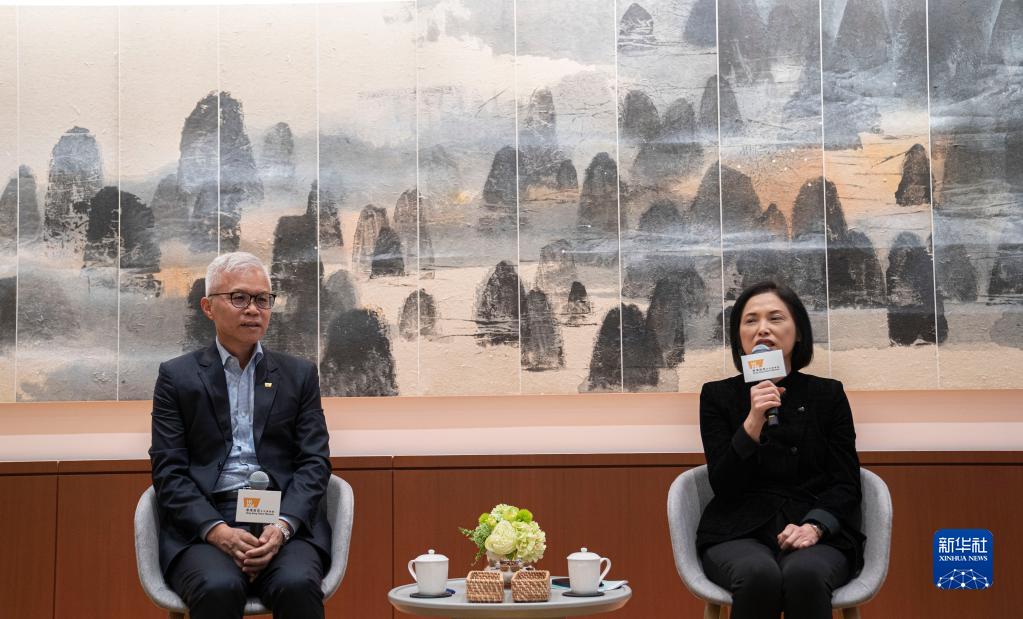 3月17日,西九文化區管理局行政總裁馮程淑儀(右)、香港故宮文化博物館館長吳志華在接受媒體采訪。新華社記者 呂小煒 攝