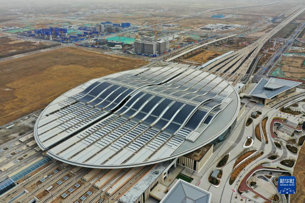 這是京雄城際鐵路雄安站(3月23日攝,無人機照片)。