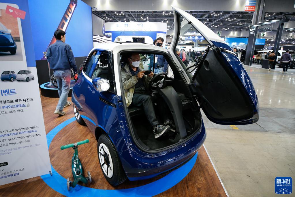 這是3月31日在韓國京畿道高陽市韓國國際展覽中心的“2023首爾移動出行展”上拍攝的微型汽車。