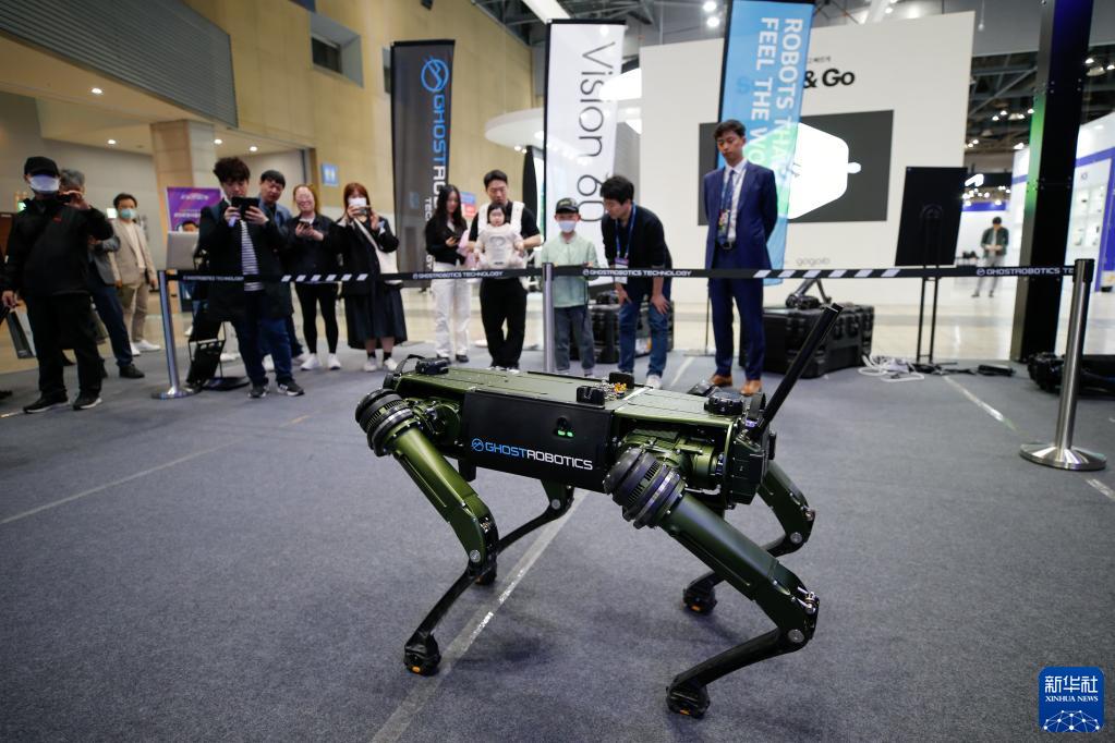 這是3月31日在韓國京畿道高陽市韓國國際展覽中心的“2023首爾移動出行展”上拍攝的機器人。