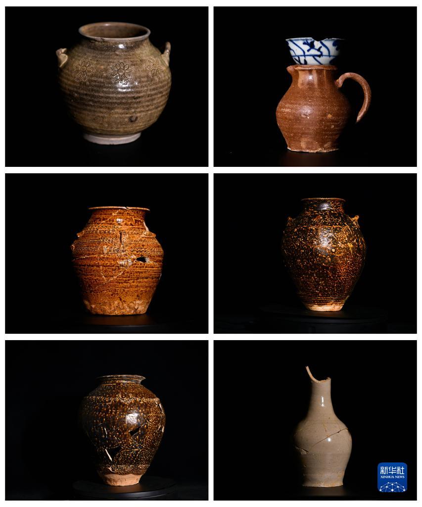 貴州貴安新區大松山墓群出土的陶瓷類文物(拼版照片,3月30日攝)。