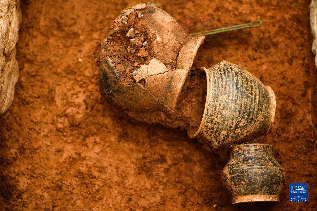 這是3月30日在貴州貴安新區大松山墓群挖掘現場拍攝的出土文物。