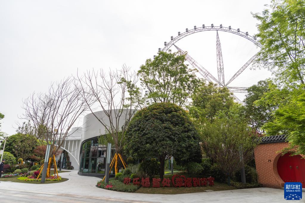 當日,重慶首個公園式婚姻登記機構在重慶市兩江新區禮嘉街道華僑城歡樂谷旁正式投用。前來登記的新人可在歡樂谷“重慶之眼”摩天輪下拍照留念,記錄幸福瞬間。