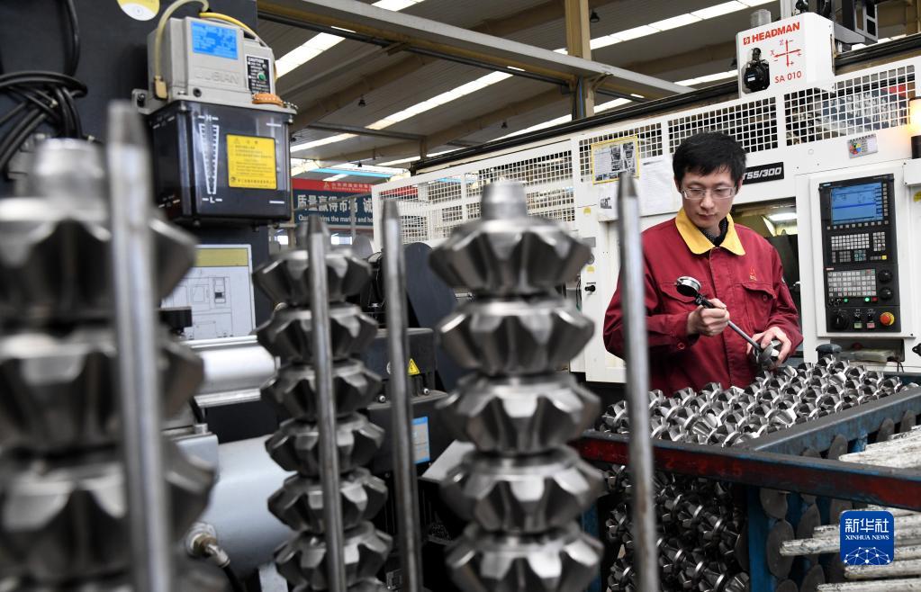 3月28日,山東省新泰市一家齒輪公司的員工對行星齒輪產品內徑尺寸進行測量。
