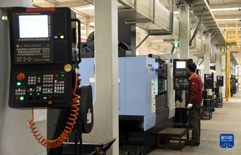 3月28日,山東省新泰市一家齒輪公司的工作人員在操控機床加工汽車零備件。