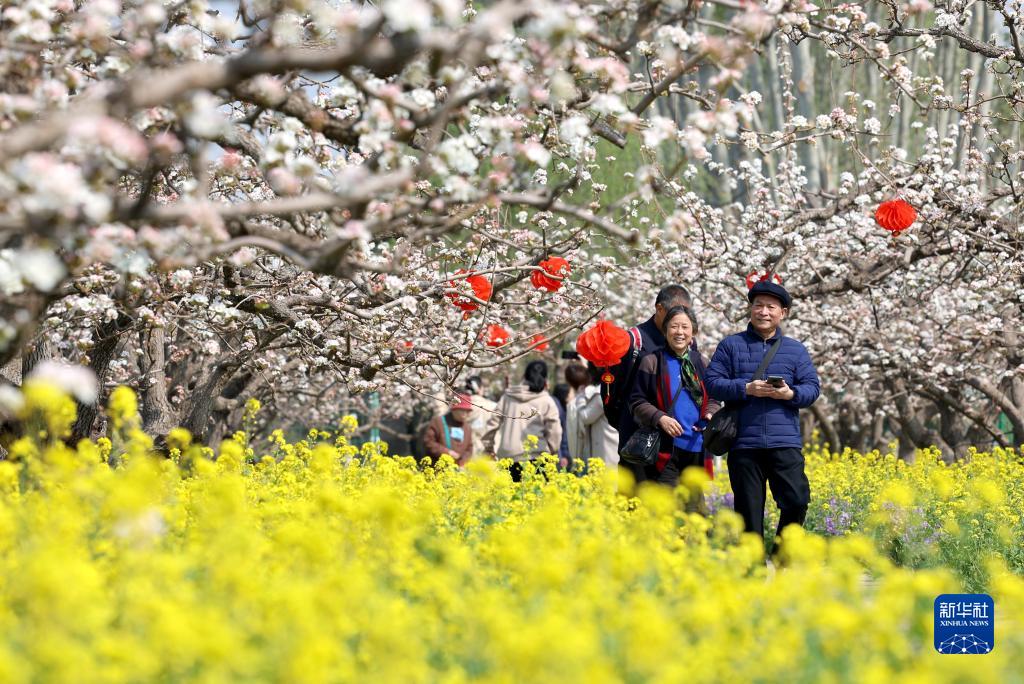 3月30日,游客在河北省石家莊晉州市周家莊鄉第九生產隊梨園內踏青賞花。
